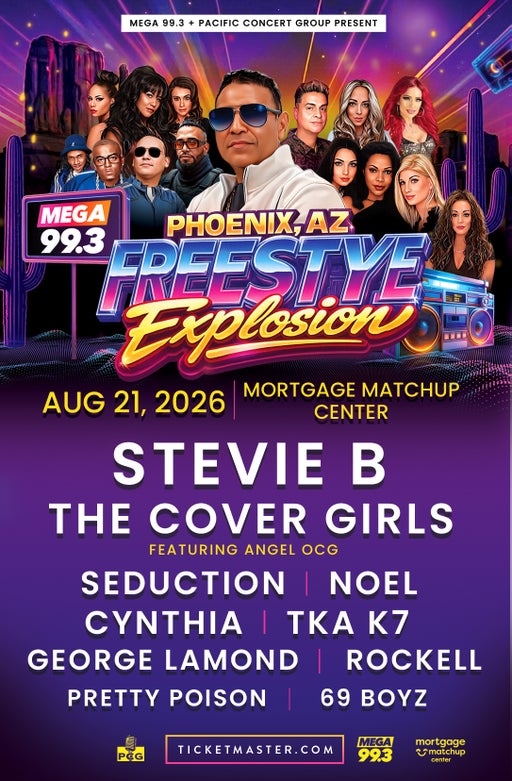 The biggest names in 80’s and 90’s Freestyle music are coming to Phoenix. Headlining this year’s concert is the King of Freestyle STEVIE B, plus pop Sensation The Cover Girls, Seduction, Pretty Poison, Rockell, TKA K7, George Lamond, Cynthia, Noel and Miami Bass icons The 69 Boyz.