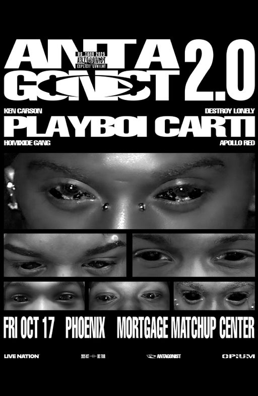 Genre-defying rapper Playboi Carti his bringing his highly-anticipated Antagonist Tour to Mortgage Matchup Center on October 17 with special guests Ken Carson, Destroy Lonely, Homixide Gang & Apollo Red! The tour, promoted by Live Nation, is Carti's first solo headline tour since 2021, where he took several cities by storm in support of his first #1 album on the Billboard 200 chart Whole Lotta Red. Earlier this year, Carti secured his second #1 album on the Billboard 200 Chart with his critically acclaimed new album MUSIC which sold over 298,000 album equivalents in its first week – listen here.
