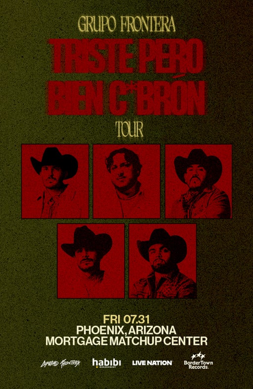 Presentada por Live Nation, la gira representa un nuevo paso en la trayectoria del grupo tras el lanzamiento de su tercer álbum de estudio, “Lo Que Me Falta Por Llorar”, proyecto que reafirmó su identidad al combinar emoción directa con el sonido norteño-cumbia que los distingue. La gira llegará a Phoenix en Mortgage Matchup Center el 31 de julio. Grupo Frontera se ha consolidado como una de las agrupaciones más influyentes de la nueva ola de música mexicana. Con más de 37 millones de oyentes mensuales en Spotify, la banda ha redefinido los límites del género al fusionar su distintivo sonido norteño con influencias contemporáneas que conectan con audiencias globales.